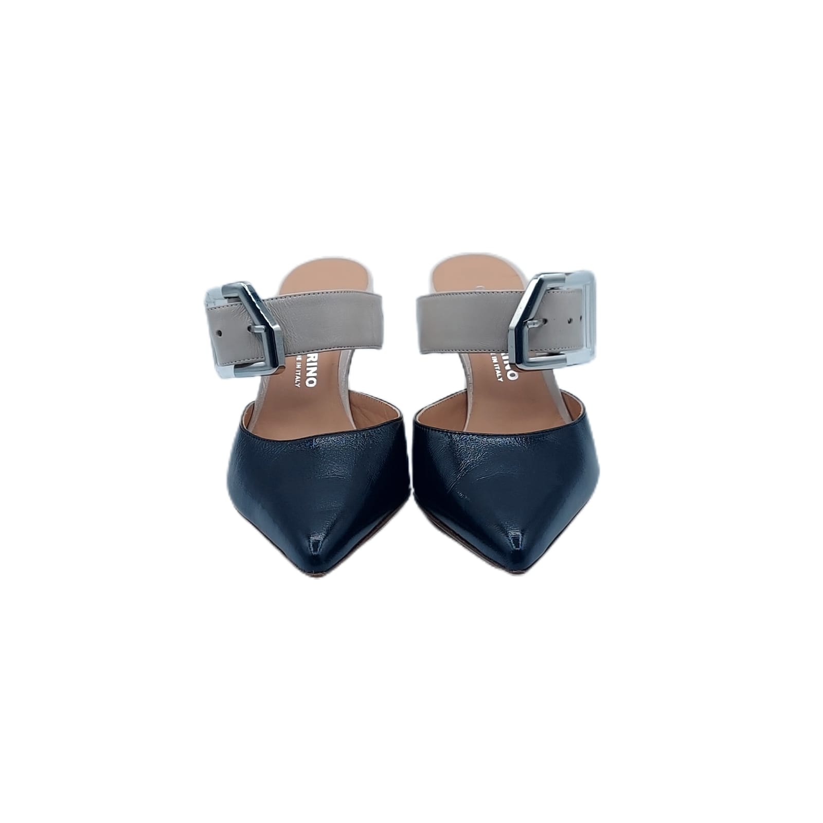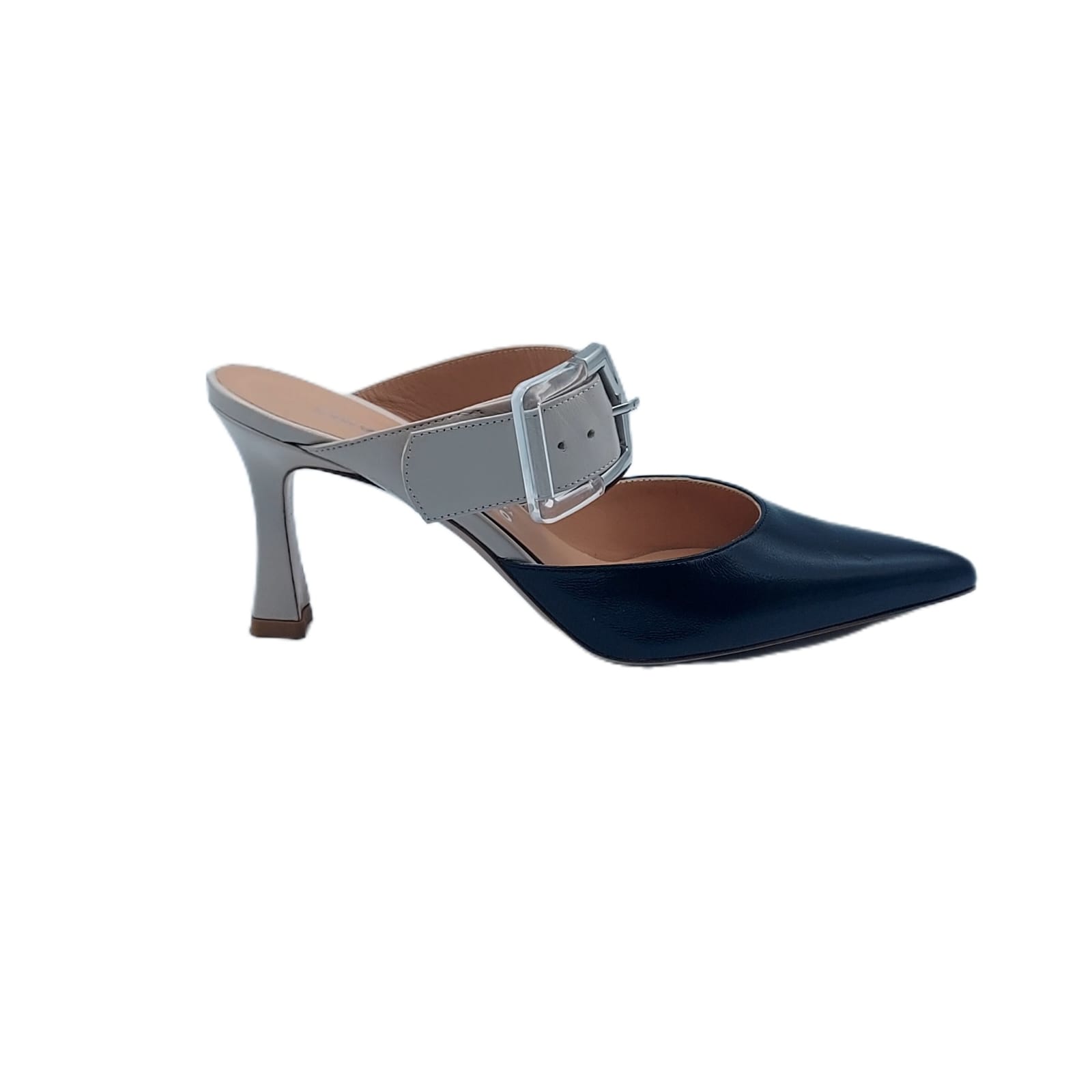 Sabot bicolore in Verlux . Con fascia impreziosita da fibbia regolabile, per una vestibilità perfetta.