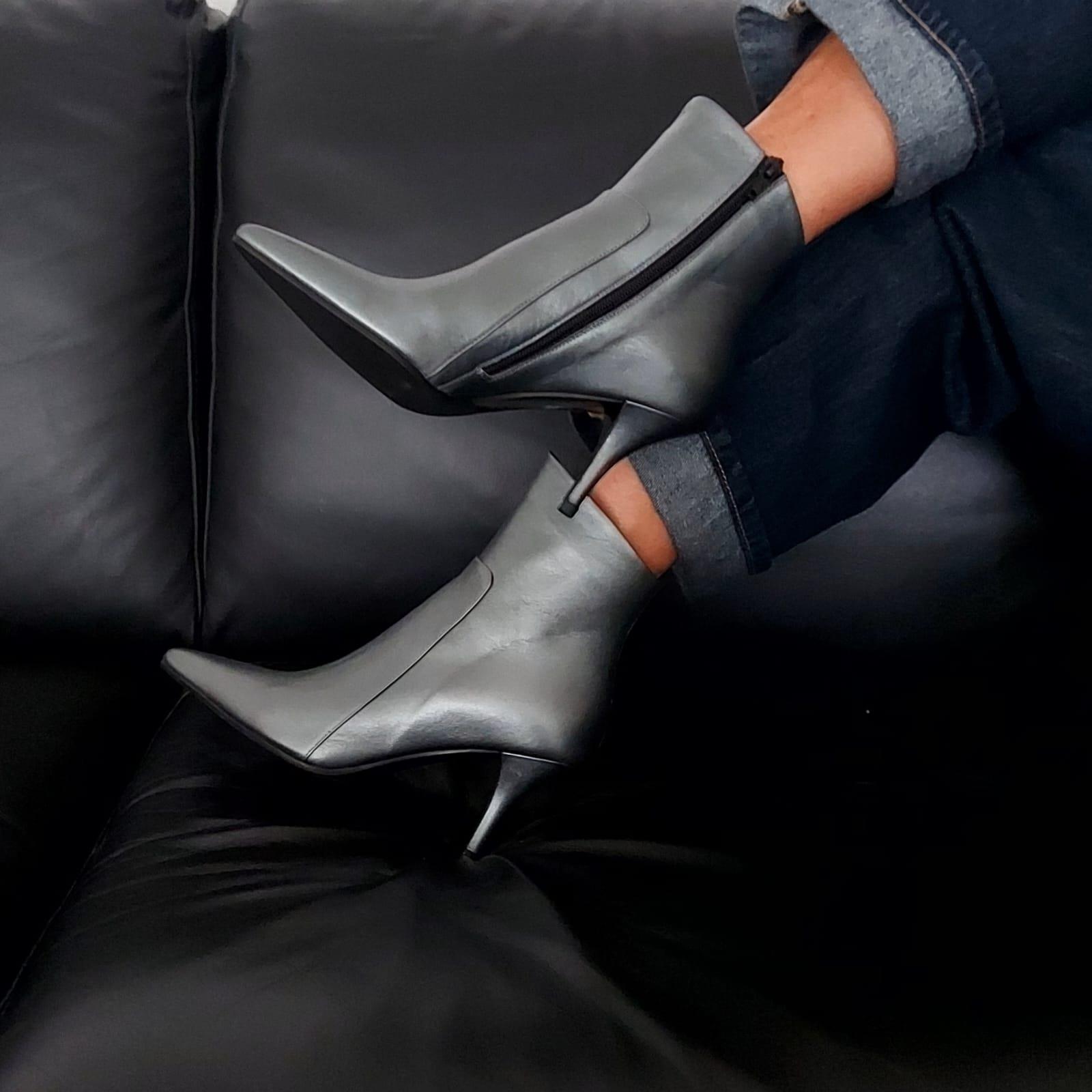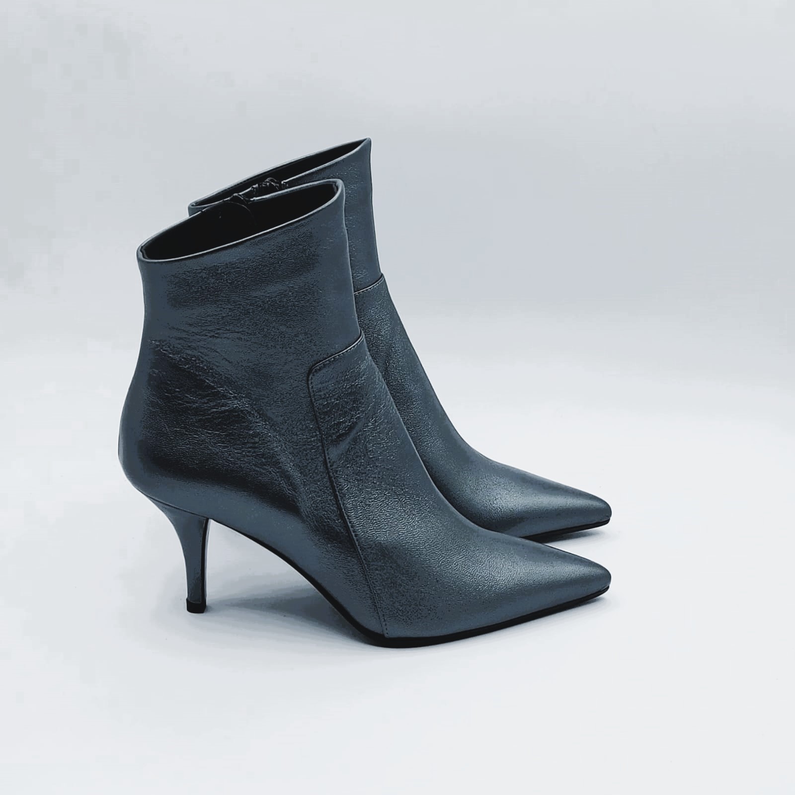 Tronchetto in pelle laminata canna di fucile, con chiusura zip laterale.